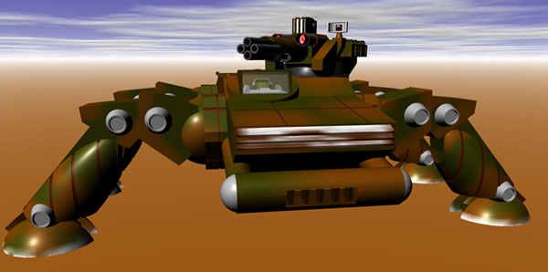 After much debate the executives of Kallon Industries was intrigued with the idea of a turret on a mech. However, the cause for the debate was the choice of converting a vehicle chassis into a quad mech.